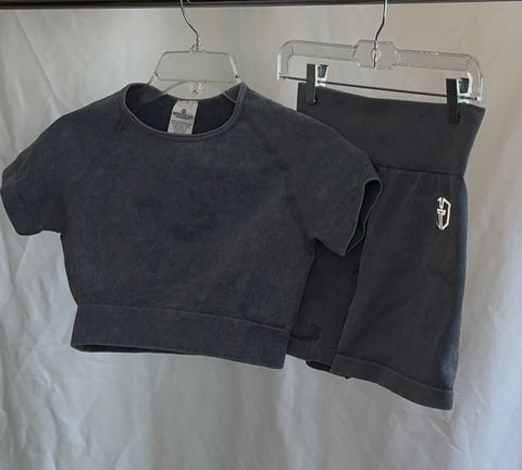 The Impact Set in Mineral Ash combines our high-rise performance shorts with our matching cropped, sculpt-fit tee with to keep you moving with confidence from barbell work to brunch.